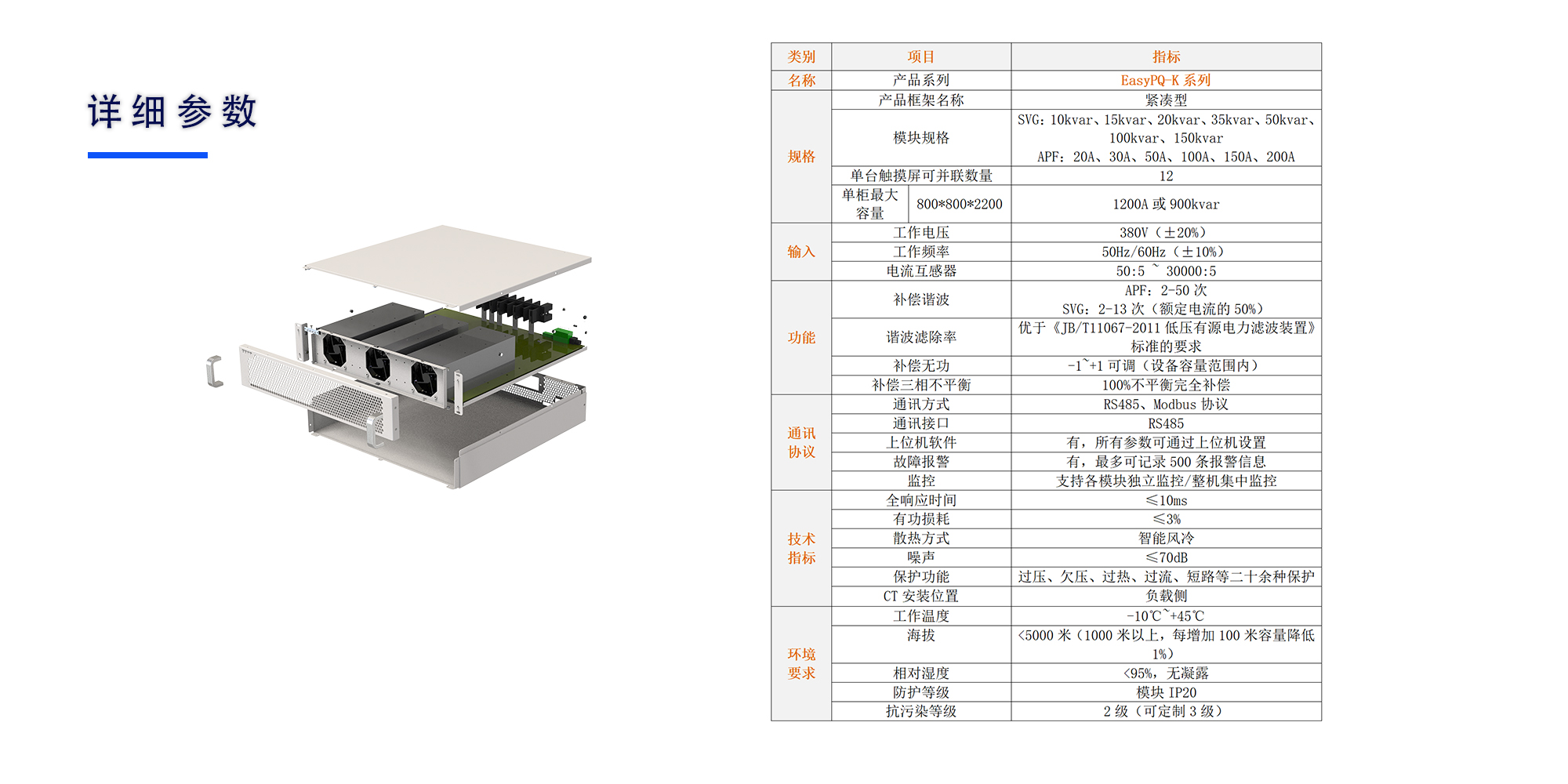 EaSyPQ-K系列紧凑型APF/SVG模块内部电路采用三电平拓扑结构,产品分为三相三线/三相四线电能质量设备,用于无功补偿、治理2-50次谐波、调节三相电流不平衡等问题,出色的性能保障了客户配电系统的稳定运行。